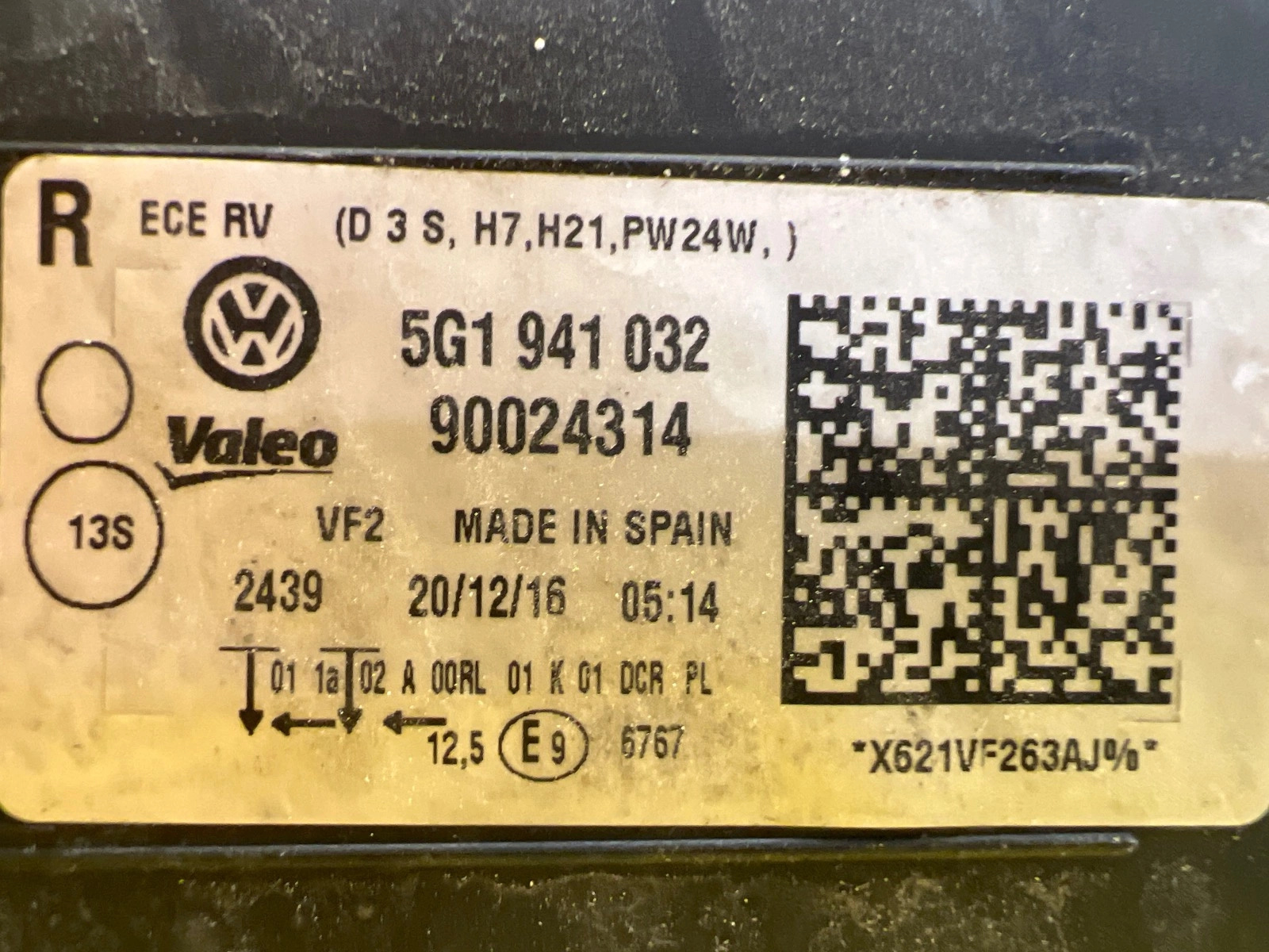 Reflektor Lampa Prawa VW Golf VII Bi-Xenon 5G1941032
